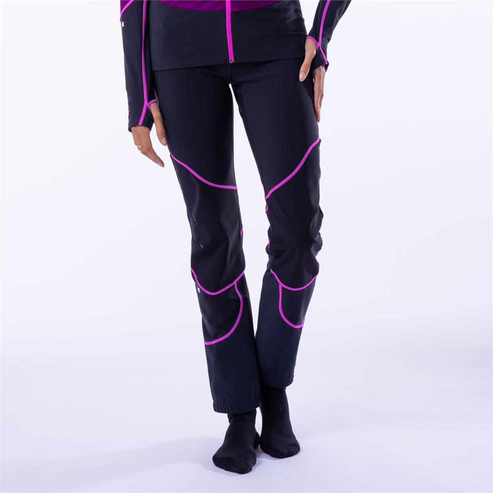 The Oxygen line is designed for training and represents the essence of fast and light in the mountains, combining extremely technical fabrics and advanced constructions with an athletic fit and unique style. Crazy 100%! The pants are made with Vuelta fabric 'Made in Italy,' chosen for its comfort, high breathability, and thermal regulation. The knee inserts are made of soft shell with a windproof membrane for additional protection, and the bottom of the legs features laminated fabric with cut-resistant reinforcement. This garment has an athletic fit and includes technical details such as waterproof gaiters with full-grip elastic that adapt to ski mountaineering boots.
