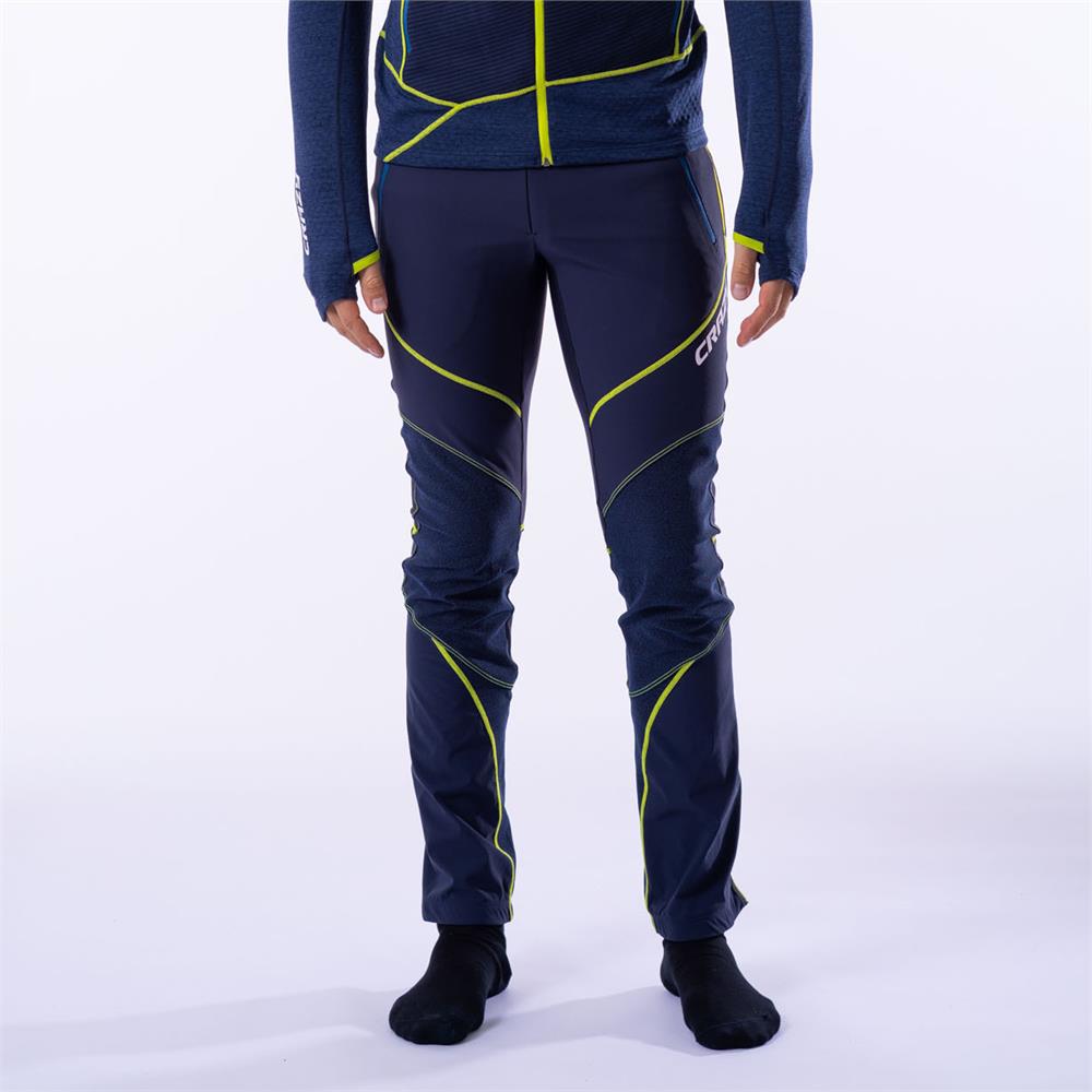 The ultimate technical pants, a must-have in your wardrobe! Designed for ski mountaineering and technical activities in the mountains, the Pant Flame is also incredibly stylish and versatile. The new design for the FW25 collection makes it even more aggressive and modern. The front is made with the proven Endurance fabric, bi-elastic and protective, with a DWR treatment for enhanced water repellency. It combines the durability and protection of the front with the thermal comfort and softness of the back, made from Vuelta 'Made in Italy,' offering an athletic fit and greater elasticity perfect for ski mountaineering. The knees feature pre-shaped patches that extend down to the inner leg, where a durable and stretchy double-weave fabric is used for increased robustness.