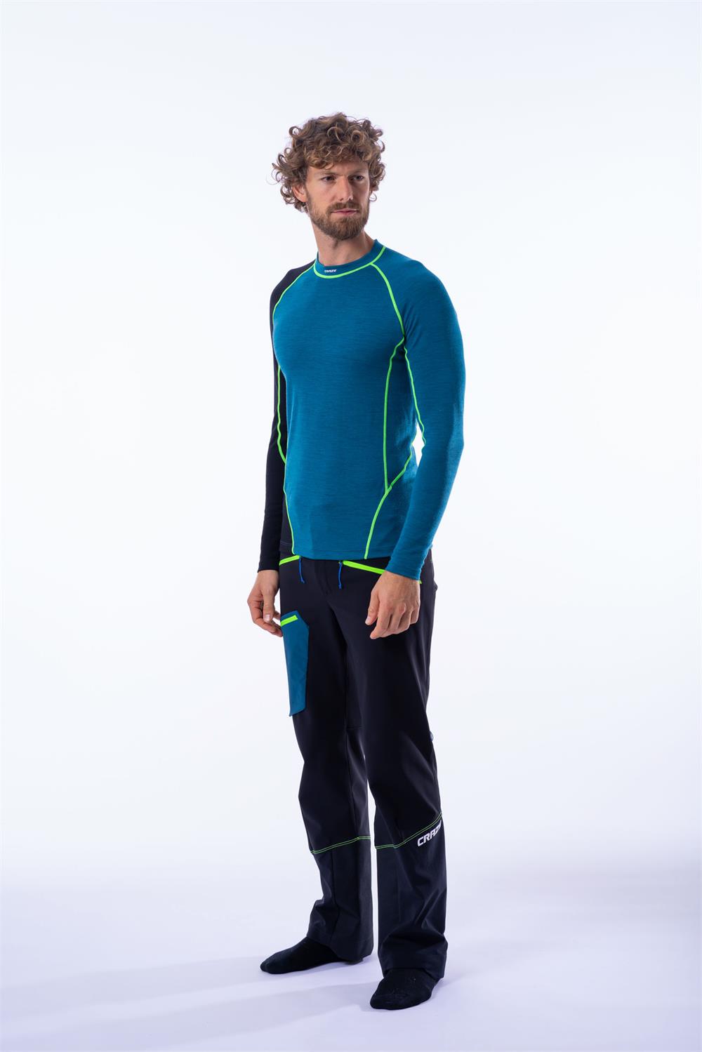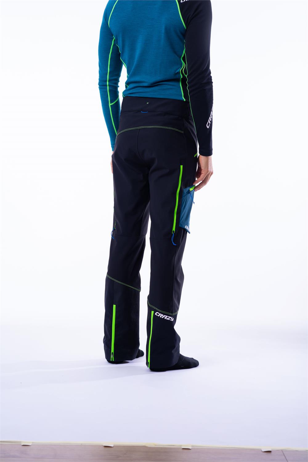 The most technical and complete high-mountain pants in the collection, suitable for free-touring or ski mountaineering in harsh conditions, thanks to their windproof features, fabric durability, and incredible stretch. This year, we have completely redesigned them with a new, modern fit that adapts to 3- and 4-buckle ski boots, along with a stylish and clean look, featuring low hand pockets and a thigh pocket with a gusset in a contrasting color. The Neutron pants are made from soft, warm softshell with a high water-repellent 2L membrane, while the lower leg is constructed from fully waterproof stretchy fabric. The adjustable waist can be opened and is fitted with elastic Velcro straps on the sides, and there are loops for suspenders. There are three zippered pockets: two at the front and one on the right thigh, while two side openings can be opened to increase ventilation. The gaiter is extremely technical: it features an adjustable zip gusset, a Full-grip elastic band to improve hold on all ski mountaineering boots, and an internal reinforcement with an applied laminate to protect against cuts from crampons or ski edges.
