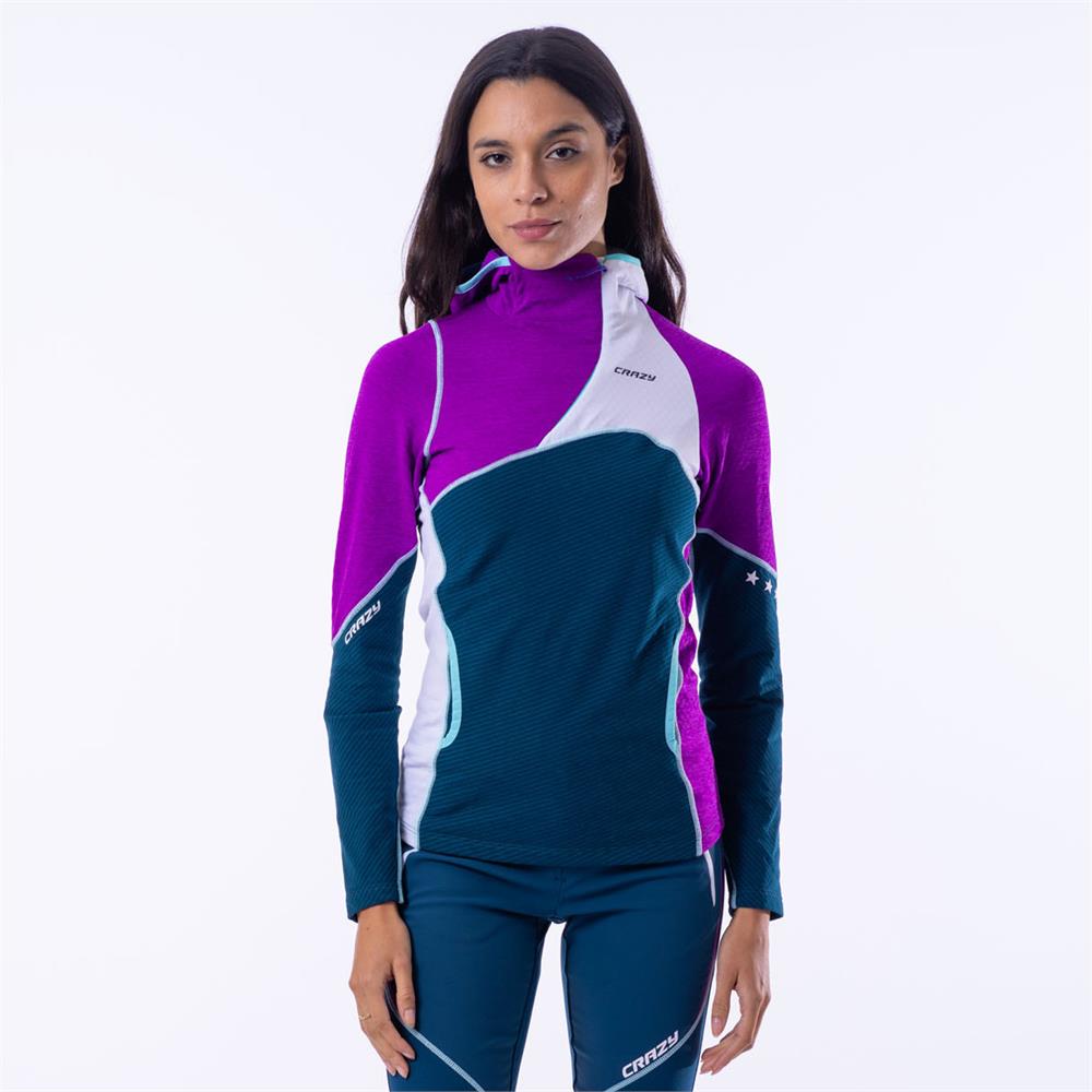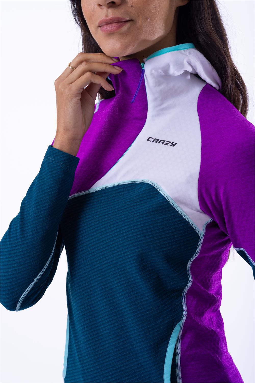 The Pull Electra is our technical mid-layer for the mountains, featuring a half-zip design that is highly appreciated for its blend of technical performance and fashion-forward look! The fabric used is the proven High Performance material with honeycomb cells that enhance breathability. In this piece, the fabric comes in its 3D version, with a three-dimensional structure that promotes airflow. The diagonal zipper ensures maximum comfort around the neck, preventing chafing. With an athletic and feminine fit, it's perfect for wearing as a second layer or as an outer layer on warmer days. In addition to its stylish design, it’s also highly practical, featuring two side hand pockets that are useful for storing small items.