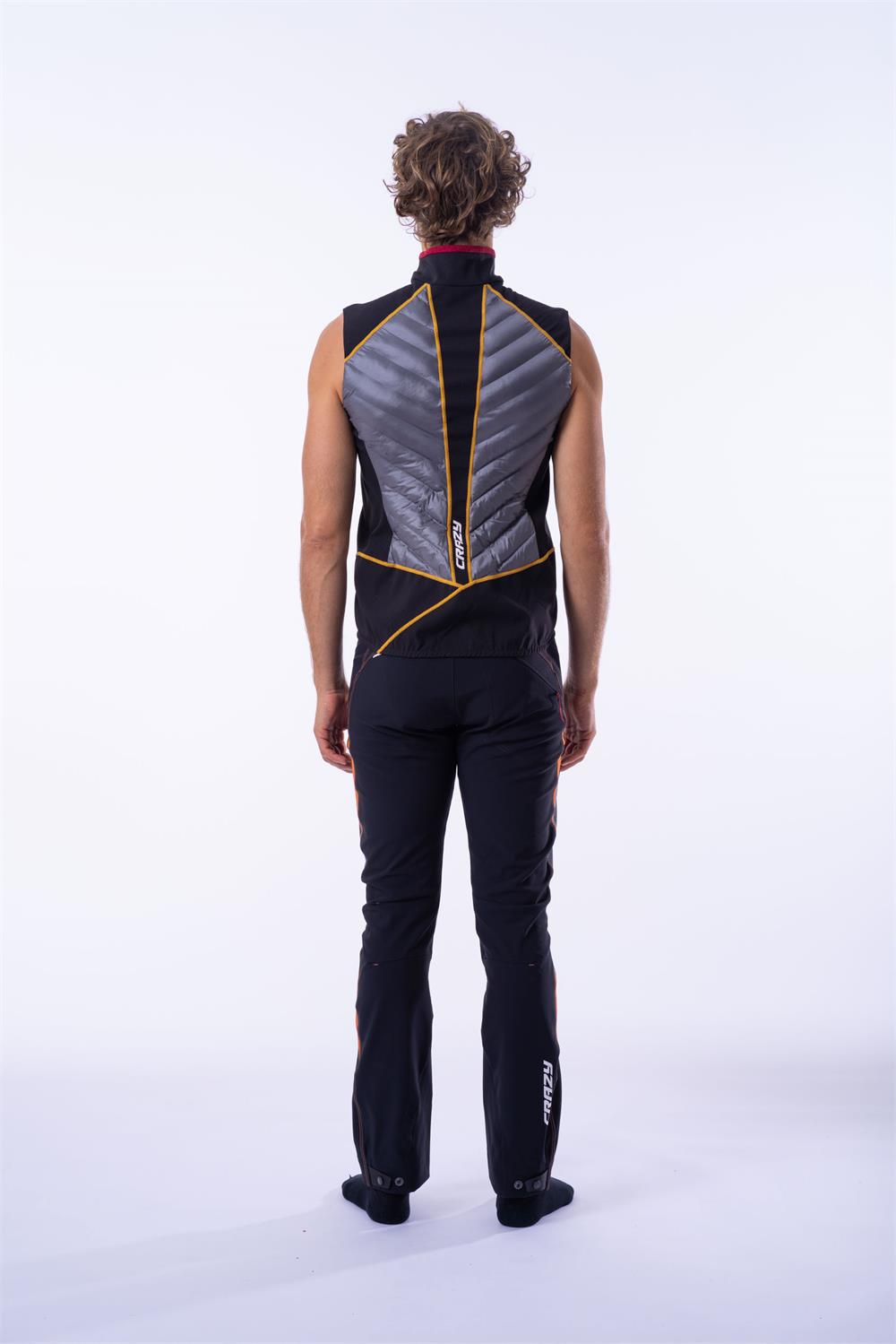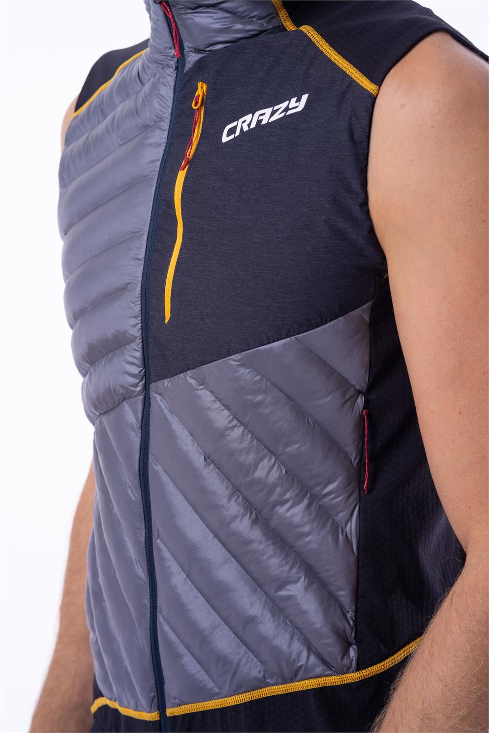 The new technical hybrid from the Crazy collection, the Vest Channel Man! It combines padded panels with fleece panels to optimize protection, warmth, and breathability. Thus, it is the perfect outer layer for ski mountaineering and activities in cold climates. The front panel is made from seamless I-Tube tubular fabric and is filled with Microrollo, an Italian synthetic insulation that offers thermal performance similar to natural down and quick drying. The side panels and hem are made from Two-Face fabric, which is soft, breathable, and treated to be water-repellent. The shoulders and back are made from Airtastic, a lightweight, elastic, and water-repellent fabric. These panels are finally lined with Polartec Alpha Direct, an insulation that comes into direct contact with the skin, offering breathability and softness. This elaborate and highly technical construction aims to provide perfect performance for every area of the body.