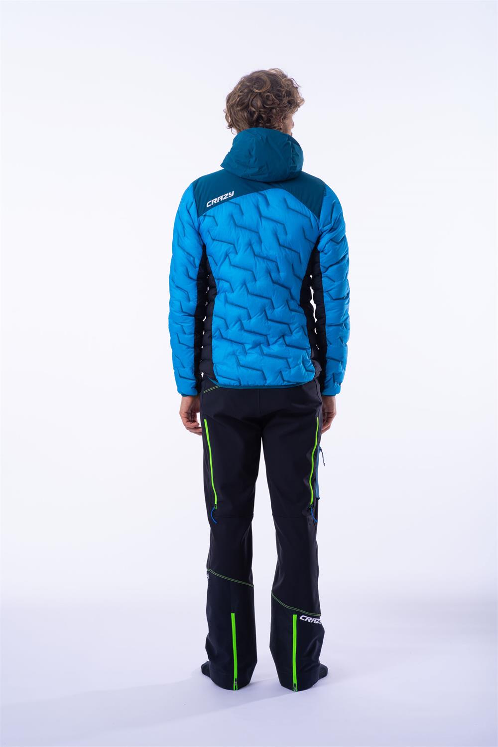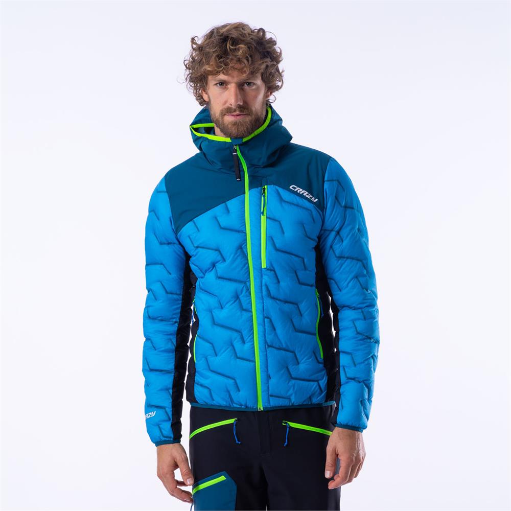 The new down jacket from our collection features a unique design thanks to a complex bonding system that replaces traditional stitching. In addition to the visual effect, the bonding ensures the stability of the down, reducing potential points of leakage. This is a medium-weight down jacket, designed for activity, with different fillings in various parts of the body: the entire main section (front panel, sleeves, and back) is filled with down. The shoulders, however, are filled with Primaloft to provide greater water resistance in the areas most exposed to water and snow. The side panels are made from seamless tubular fabric and filled with Microrollo, an Italian synthetic filling. The side panels are also elasticated, making the jacket extremely comfortable during activity. Thanks to this construction, the Jkt Flame is the perfect down jacket for ski mountaineering and mountain activities.