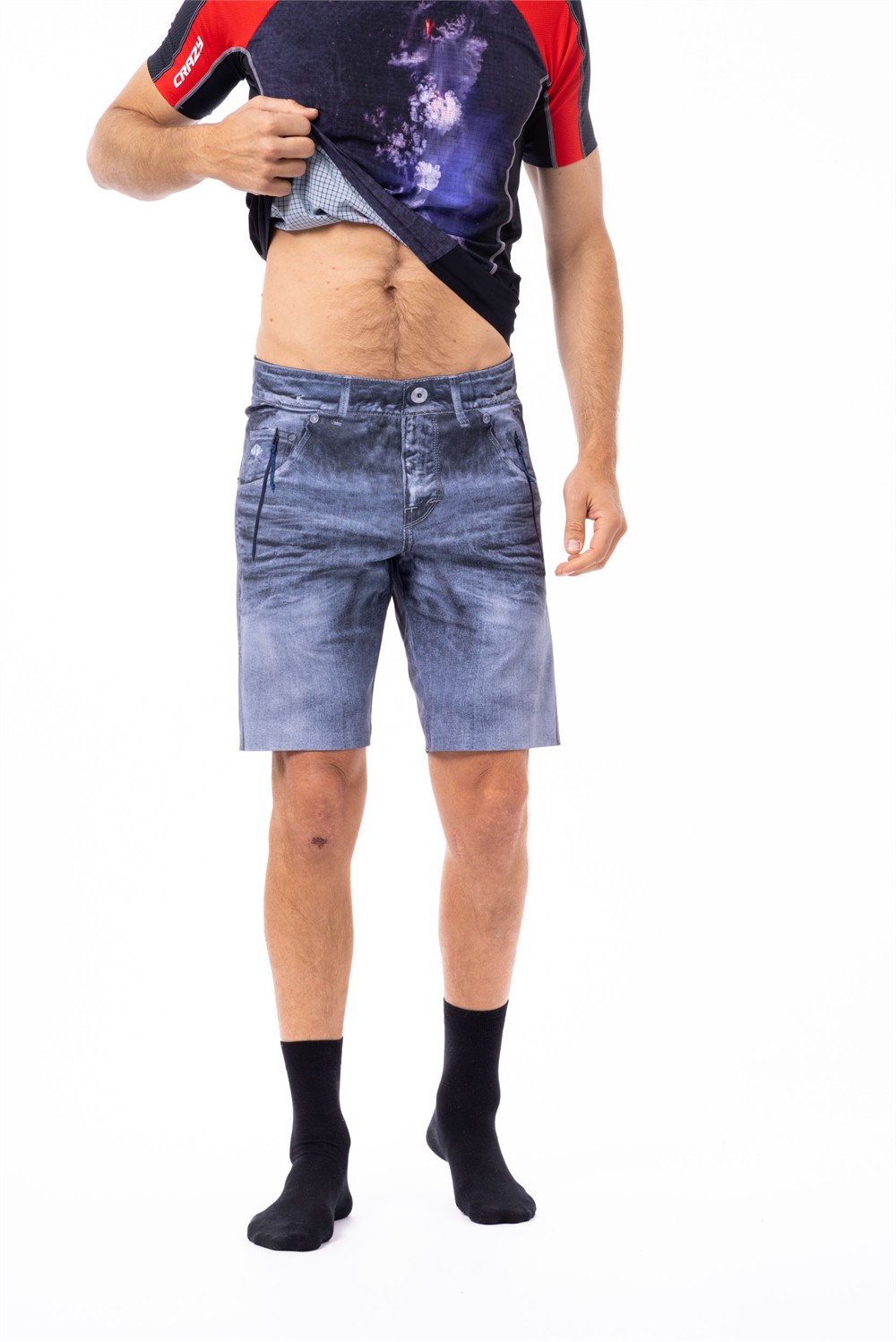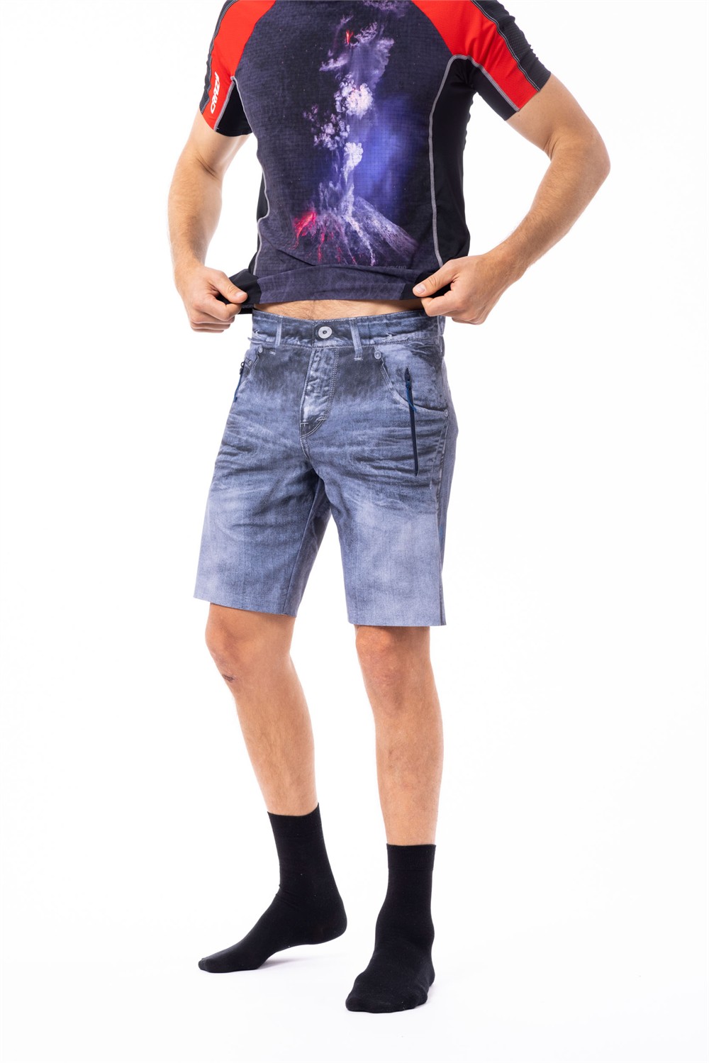 The most stylish shorts in the collection, unavailable anywhere else! Fully printed in denim, the Super Shorts are lightweight, breathable, and perfect for trekking and leisure time. They are made with a highly technical fabric: Stretch Series, bi-elastic and soft. The unique look is achieved by cutting each piece by hand to perfectly align the prints with the seams. The comfortable waistband is ultra-flat and elastic, and the hand pockets and back pocket are secured with zippers.