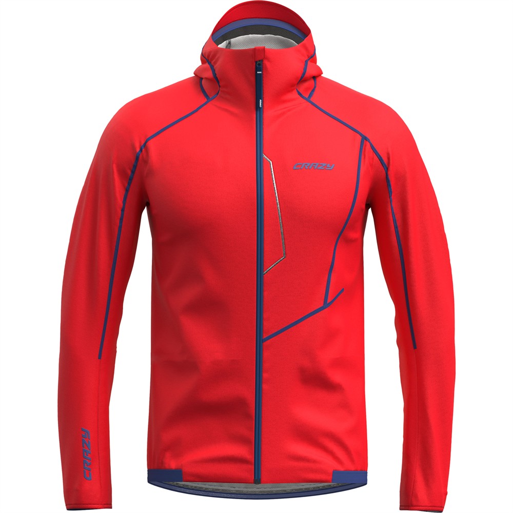 Completely redesigned this year, the Jkt Shark is the perfect ultralight, fully waterproof jacket designed for running and outdoor activities. What sets it apart is the lightweight Dermizax nylon fabric, with 2.75 volume waterproofing, 20K mm water column, and 20K breathability columns. This lightweight, 4-way stretch, breathable, and compressible fabric is perfect for a trail running shell. All the seams are taped and elasticized to ensure maximum water protection and optimal comfort. The hood is adjustable with a microfiber sweatband and a rigid peak, providing effective protection against the elements. The updated athletic fit is designed to adapt to a t-shirt or to be worn with a mid-layer on colder days or during trekking. The jacket gets its name from the "Shark Vents," an innovative ventilation system designed by Crazy, inspired by the gills of sharks. These are inverted openings located behind the arms that prevent water from entering while allowing direct airflow as they open during movement. The front chest pocket with a zipper allows for easy access to essentials during activity.