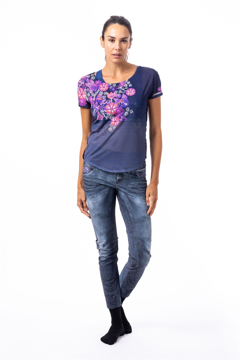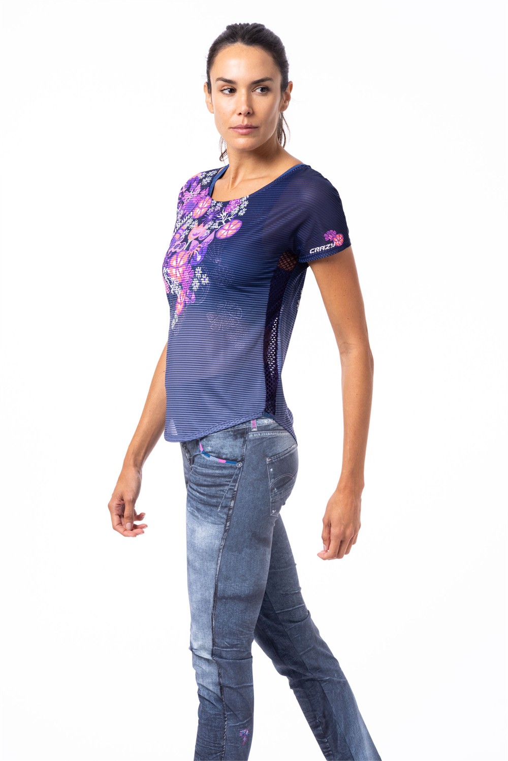 Modern T-shirt with removable internal bra. It stands out on the hottest days thanks to the Hydro Cool fabric, incredibly breathable and lightweight with a slatted weave, and the mesh side panels. The internal bra is made of quick-drying microfiber and is removable with a simple snap button.
