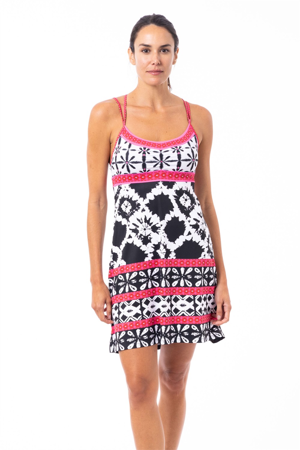 Our Kimera Dress is the epitome of femininity and versatility: whether on the beach or in nature, it’s your ally on hot days! The skirt is made from a cool, lightweight, and breathable microfiber treated with Rapid-dry. The straps, extremely light and elastic, support an integrated bra with removable cups.