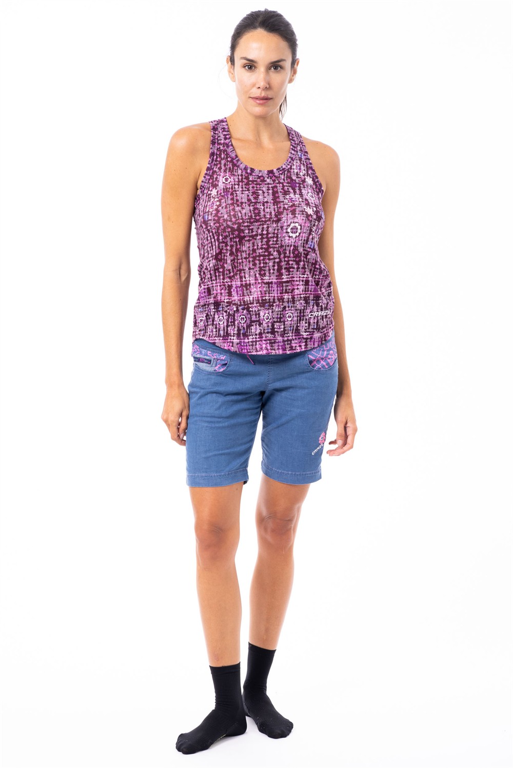The After Top is the ultimate lifestyle piece! With its vibrant patterns, it’s perfect for adding color to your leisure activities! Made from a cool polyester and viscose fabric with all-over print, it’s ideal for the warmer days thanks to the devoré technique, where the fabric is lightened. The model is designed with American-style straps and a crisscross pleated back.