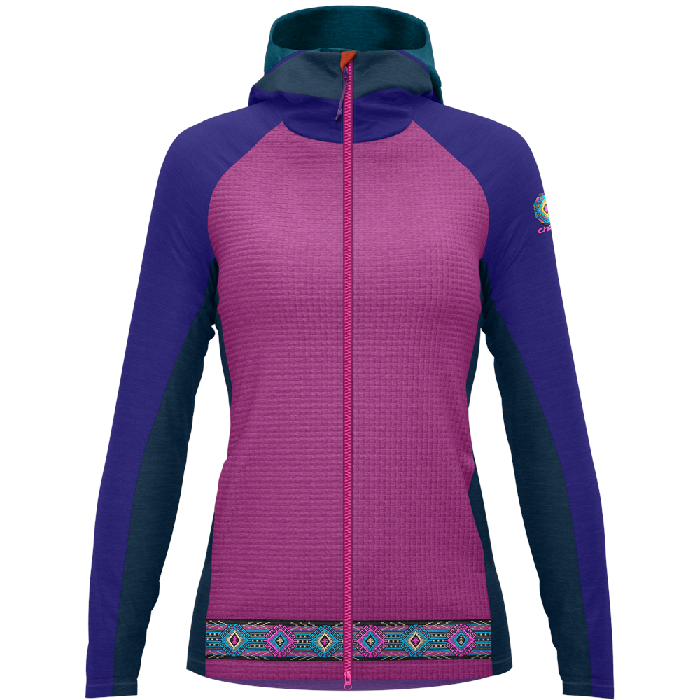 Comfortable hip-length hoodie, a garment that nods to fashion and is perfect for city life and yet, thanks to the technical fabrics it is constructed with, it is recommended for leisure time and moderate-output activities. This comes as no surprise, as all garments within Crazy's Lifestyle collection are made from technical fabrics. This hoodie is constructed using a soft pique fabric with a hexagonal texture that promotes micro-scale airflow. It features a full-length zip on the front, a large and smart hood and practical hand pockets.