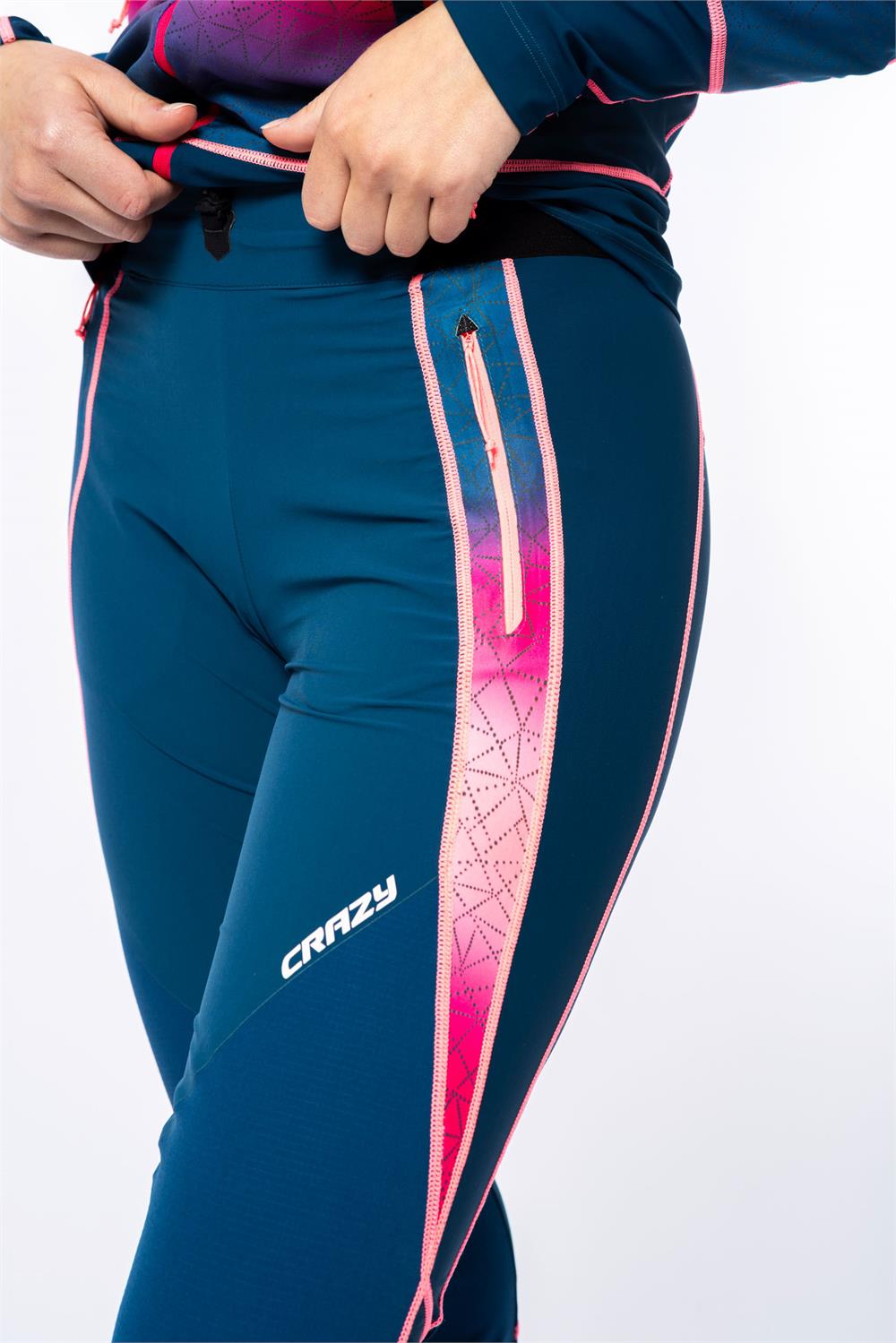 The technical construction includes an open elastic waist, two hand pockets with reflective print fabric, and the use of two fabrics: the front part is made with the resistant and bi-elastic Endurance Light, while the knees, bottom, and back are in ultra-light Stretch Series.