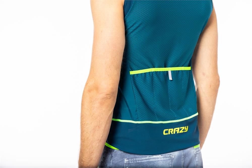 The fabric is the ultra-light Airtastic by Toray, elastic and wind-blocking, while the entire back portion is made of ultra-light breathable Stretch Series fabric. The high collar, front zip closure, and three back pockets make all the difference.