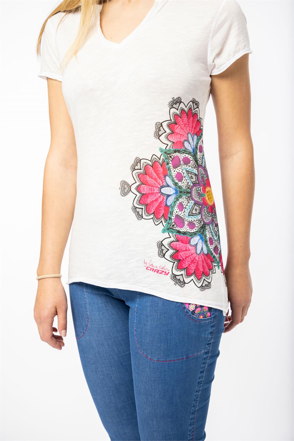The Mandala T-shirt stands out for its exclusive designs and screen-printed patterns. Stylish and vibrant, it's a perfect leisure time product made from natural hemp. The V-neck and very short sleeves with raw edges characterize it.