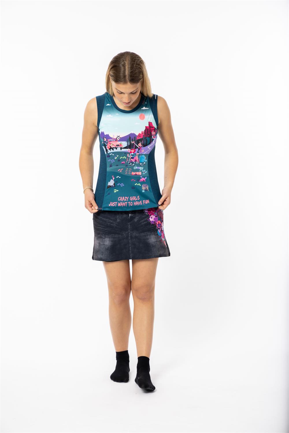 More than just a tank top, the Sirio Top is a sleeveless technical t-shirt: the wide straps allow for backpack usage and the shallow neckline is typical of technical garments.