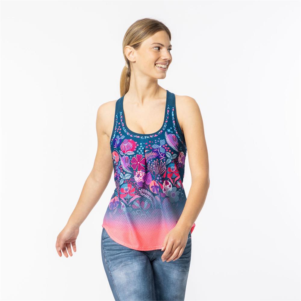 The Break Top is our double-cloth tank top designed for outdoor activities and trekking. Crafted for a stylish look. It stands out for its vibrant prints and bright colors, but it doesn't lack technicality, thanks to the internal fabric in rapid-dry melange microfiber and the external mesh in breathable fabric with quick-drying treatment. It features soft straps and an internal bra with a unique fit.