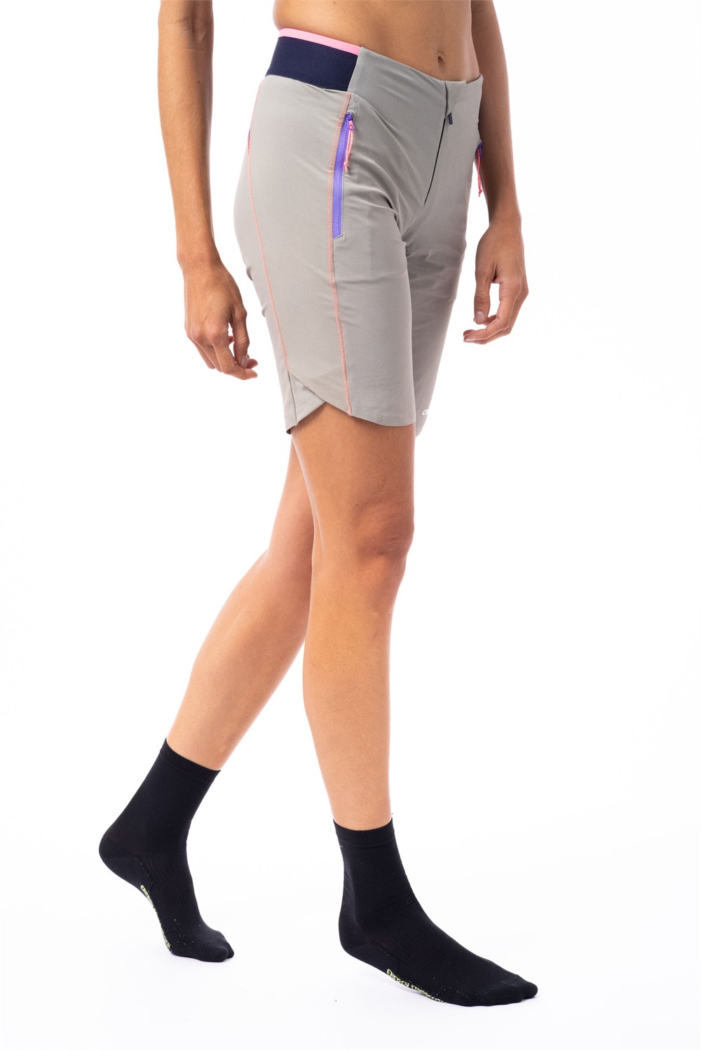 Our most technical shorts, ideal for summer hiking! Made from Lite-Guard fabric, which combines breathability, elasticity, and wind protection. The design is essential and minimalist, even cleaner this year thanks to some refined aesthetic details on the sides and the bonded, rounded hem with an overlapping side slit. The open waistband with invisible zip and hidden flat button ensures a perfect fit and total comfort. Two zippered hand pockets complete the garment, making it practical and functional.