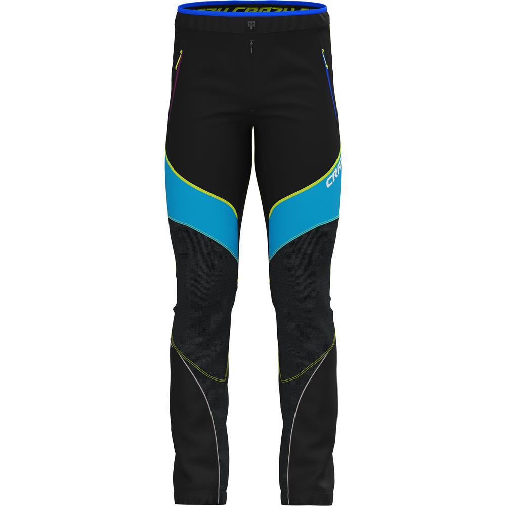 Athletic-fit ski-mountaineering trousers that combine hard-wearing and protective panels over the front with a soft, comfortable thermal back - to deliver a pair of truly versatile hybrid trousers. They are constructed using two main materials: the front is in Endurance, a 2-way stretch soft shell, now more protective and water-repellent thanks to the DWR finish - yet equally breathable; the back is in Vuelta, the lighter weight, high-stretch fabric made in Italy - for maximum freedom of movement. The knees are articulated and finished with a pattern that reaches down to the inside panels at the bottom of the legs, made of a durable double-weave stretch fabric.