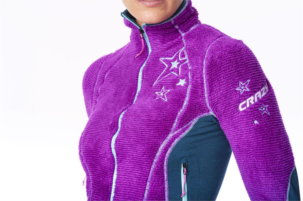 "Warm and incredibly soft top - this year completely updated with a look that is more stylish and feminine than ever, thanks to a new cut and embroidered details. The Pull Exit is the warmest midlayer in our ""base camp"" category, the ideal garment for walks on colder days or to wear downtown - without renouncing to the extraordinary comfort of our fur-like Fluffy fabric. Bottom, underarm areas and sleeve panels facing the body are made from HP technical fleece - in a hybrid construction that is a guarantee of breathability and perfect fit. In addition to the full-length zip on the front and hand pockets with elasticated binding, the new model is detailed with colour-contrast flat seams."