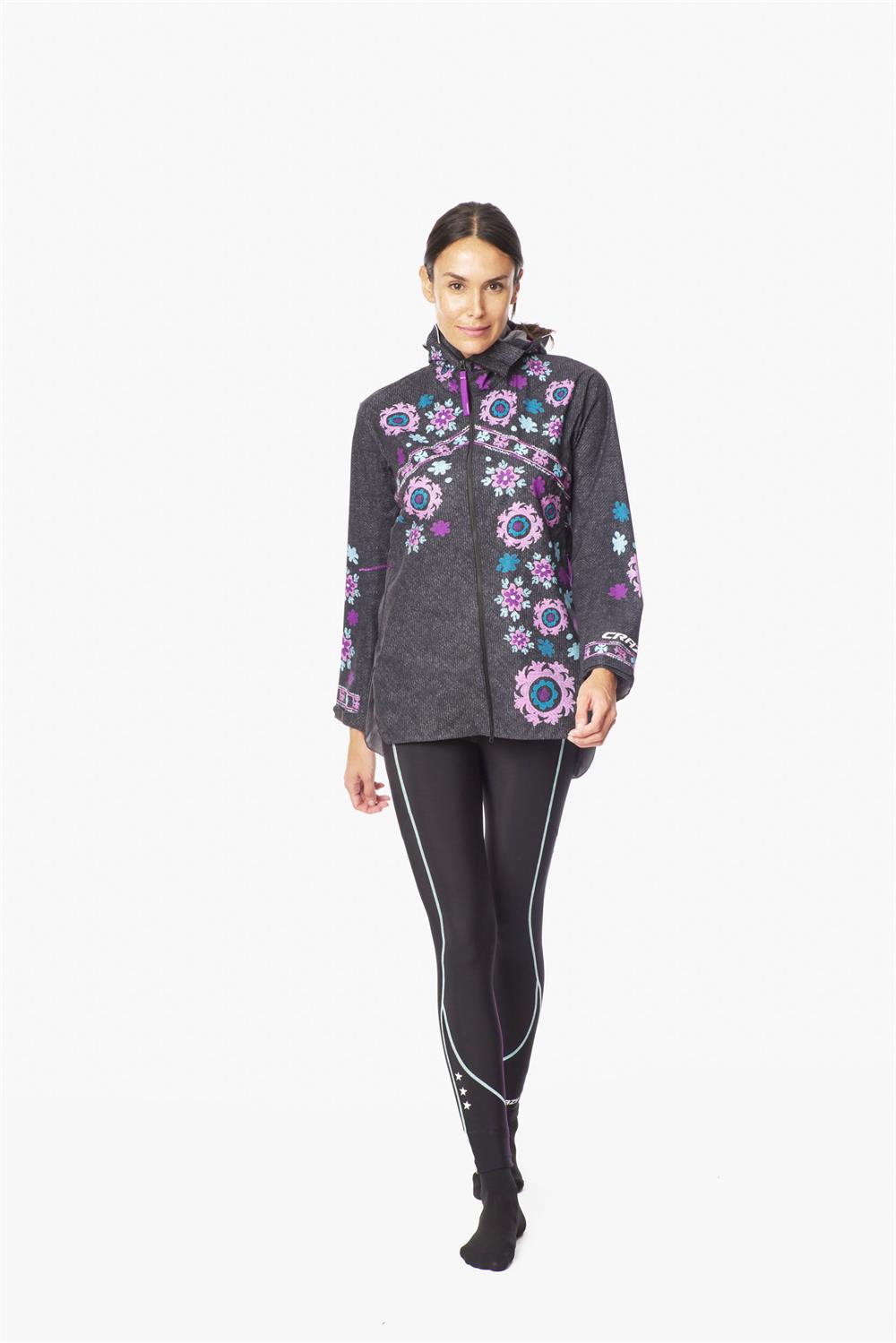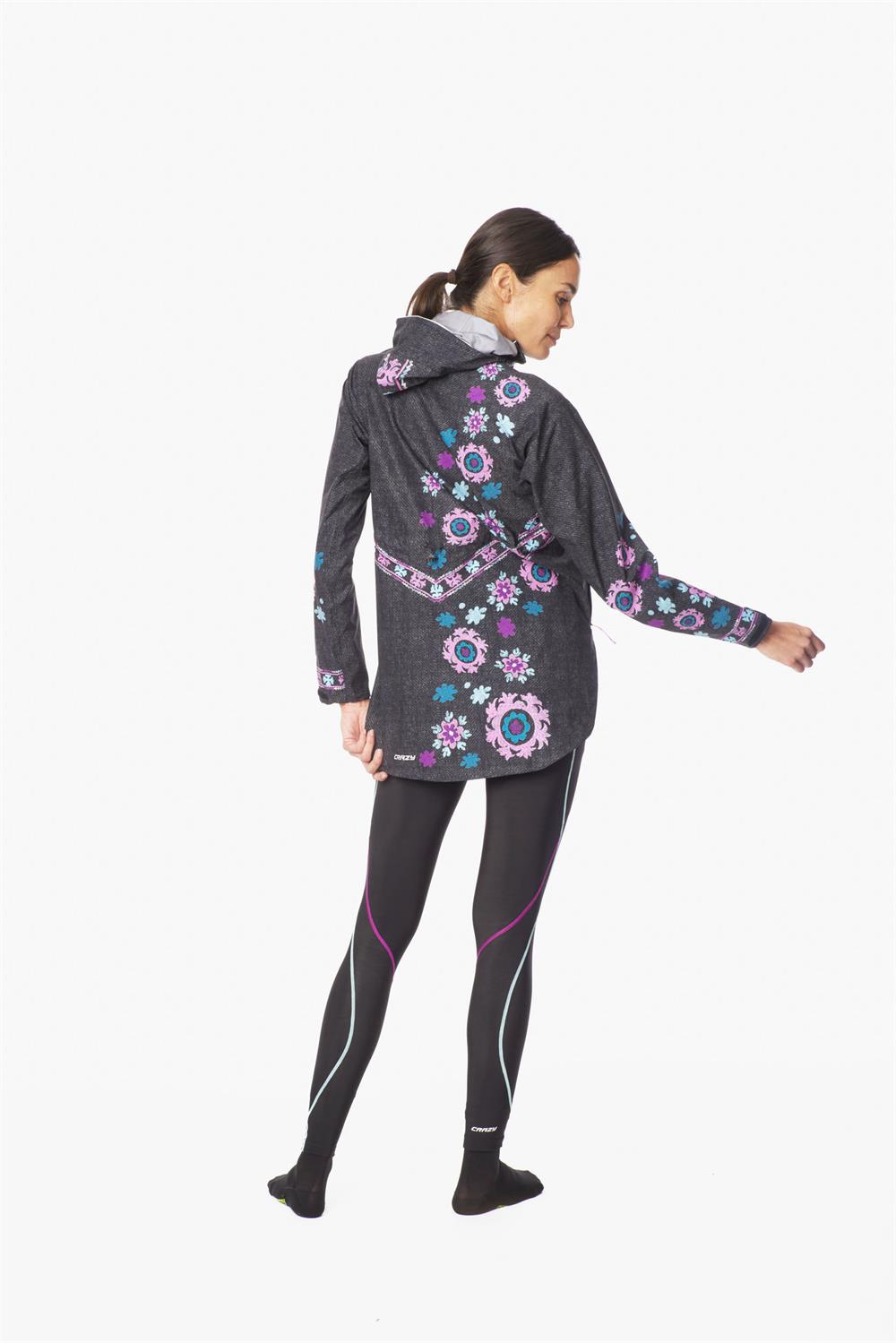 A new product in our collection: a long waterproof jacket made from a 3-layer fabric, extremely technical and protective against rain and snow, but with a stylish look that makes it perfect in the mountains as well as downtown. The Wonder Magic stands out for the use of a technical fabric created especially for Crazy: a full-stretch, breathable nylon with a 20,000mm hydrostatic head rating and a finish that makes it extremely soft and rich to the touch. The coat style makes this shell more protective over thighs and buttocks, as well as very smart - thanks to overlapping slits, feminine cut and all-over print.