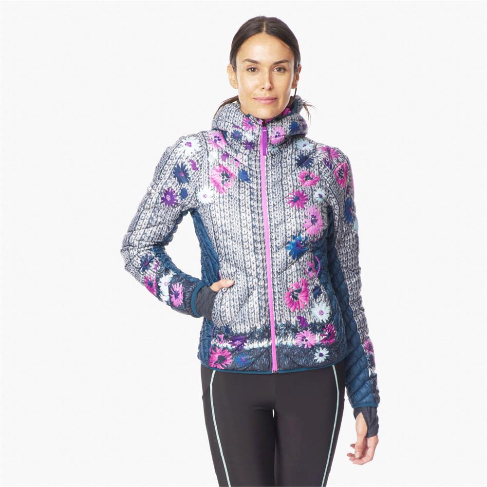 Insulated jacket with a fashion-forward design and an elegant, feminine fit. This year we have updated the model by inserting a colour-contrast side panel, for a sleeker and even more stylish fit. Thanks to the technical stretch fabric, Wonder Magic is perfect for high-intensity activities - and it's fantastic to be able to enjoy a high level of comfort everyday too. The jacket is constructed from 20 denier Pertex Quantum - a technical fabric that is lightweight and soft, yet capable of good windproof protection. The Microroll Recycled insulation delivers comfort and warmth. The hood is warm and cosy.
