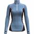 Base Layer with a high collar enhanced by a half front zip and an ergonomic fit that perfectly adapts to your body. Made from an innovative fabric that combines two premium yarns: wool and polypropylene. This combination takes advantage of the insulating and odor-resistant properties of wool, while the polypropylene ensures unmatched softness to the touch. The flat anti-chafing seams, enriched by an elegant color contrast, not only guarantee optimal comfort but also add a distinctive touch of style.