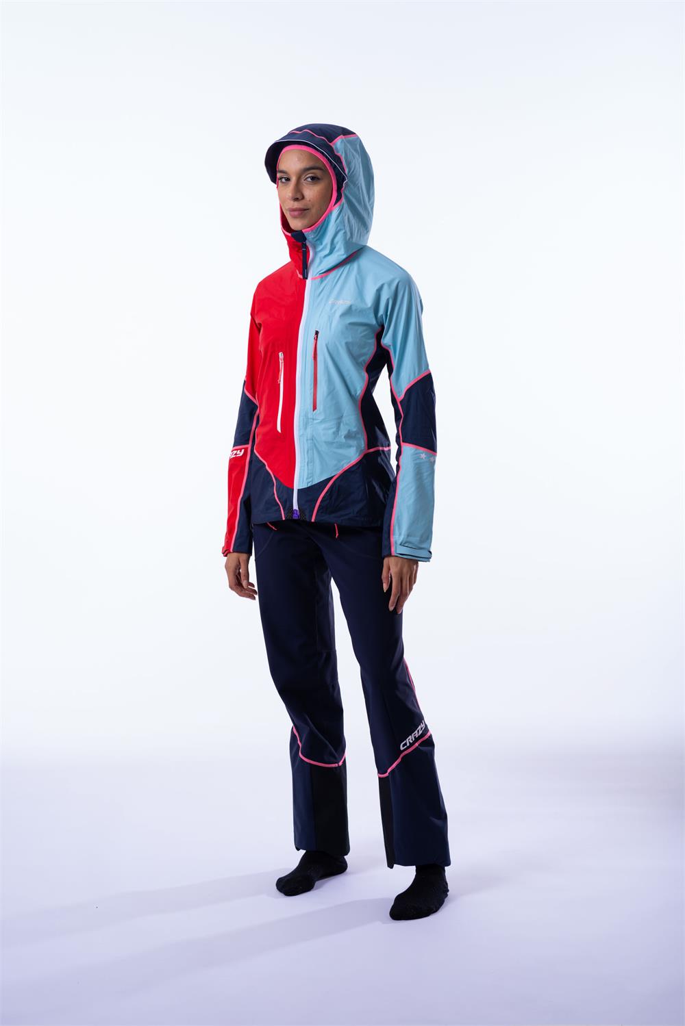Three-layer waterproof shell, fully waterproof and seam-taped, among the lightest and most packable in its category, with a vibrant and colorful Crazy style! Unlike other shells on the market, the Jkt Boosted Proof is designed for high-intensity activities thanks to its fully stretch fabric, lightweight design, and movement-enhancing construction. Waterproofing is ensured by the excellent Dermizax fabric with a 20K mm water column and taped seams. Breathability is enhanced by Crazy’s exclusive Shark Vents system: reverse ventilation openings that allow airflow but prevent water from entering, enabling moisture to escape while maintaining full waterproof protection.