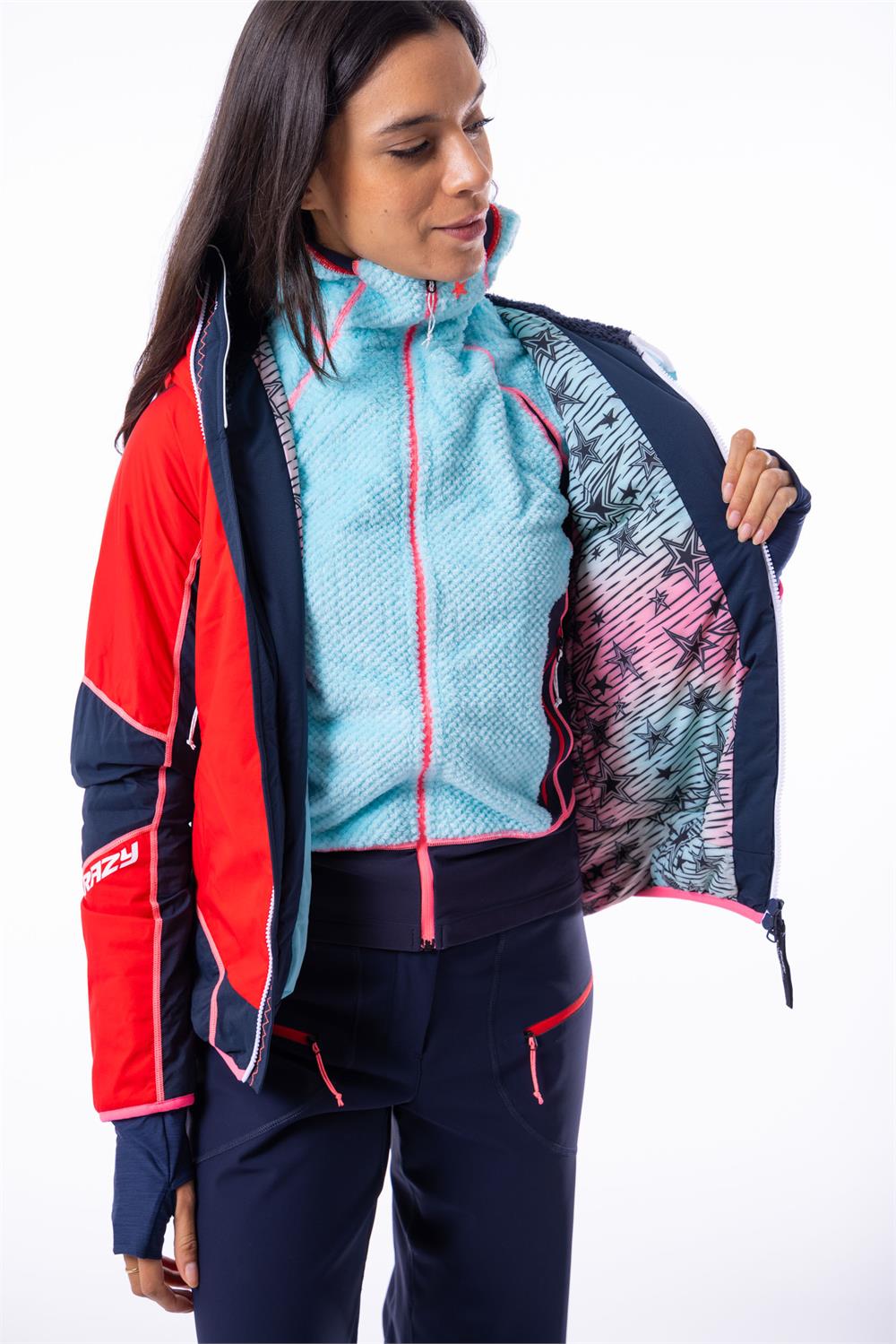 The most protective jacket in our collection. This product combines exceptional technical features and protection with complete elasticity, making it the perfect solution for alpinism and extreme environments. At the same time, its very feminine fit makes it a stylish jacket that enhances the figure with carefully crafted cuts and elasticated side panels. Both the outer fabric, insulation, and lining of the Inspire jacket are completely elastic. The outer fabric is Toray's Dermizax, offering complete waterproofing with a 20k mm water column and prioritizing breathability. The seams in the upper part are taped to ensure full waterproofing in the most exposed areas to rain and snow. The Primaloft Active insulation is warm, water-repellent, and also elastic.