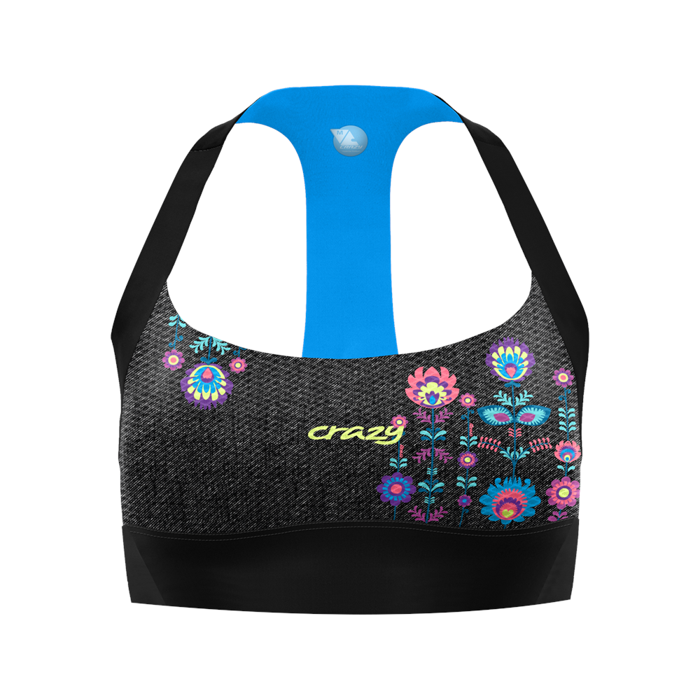 Colorato sport bra comodo e traspirante pensato specificamente per l'attività sportiva. E' prodotto in leggera microfibra elasticizzata con struttura differenziata a seconda delle necessità, con trattamento antiodore a rapida asciugatura. L'alta fascia migliora la stabilità e non crea attriti, le imbottiture delle coppe sono amovibili, modellate e offrono elevato sostegno.