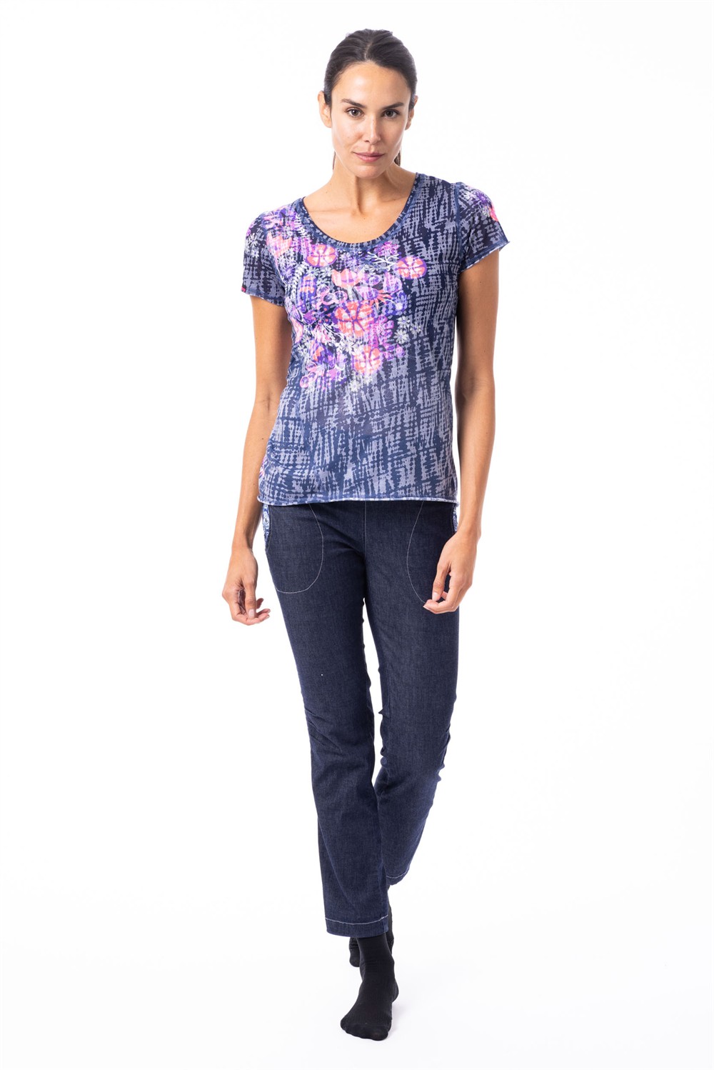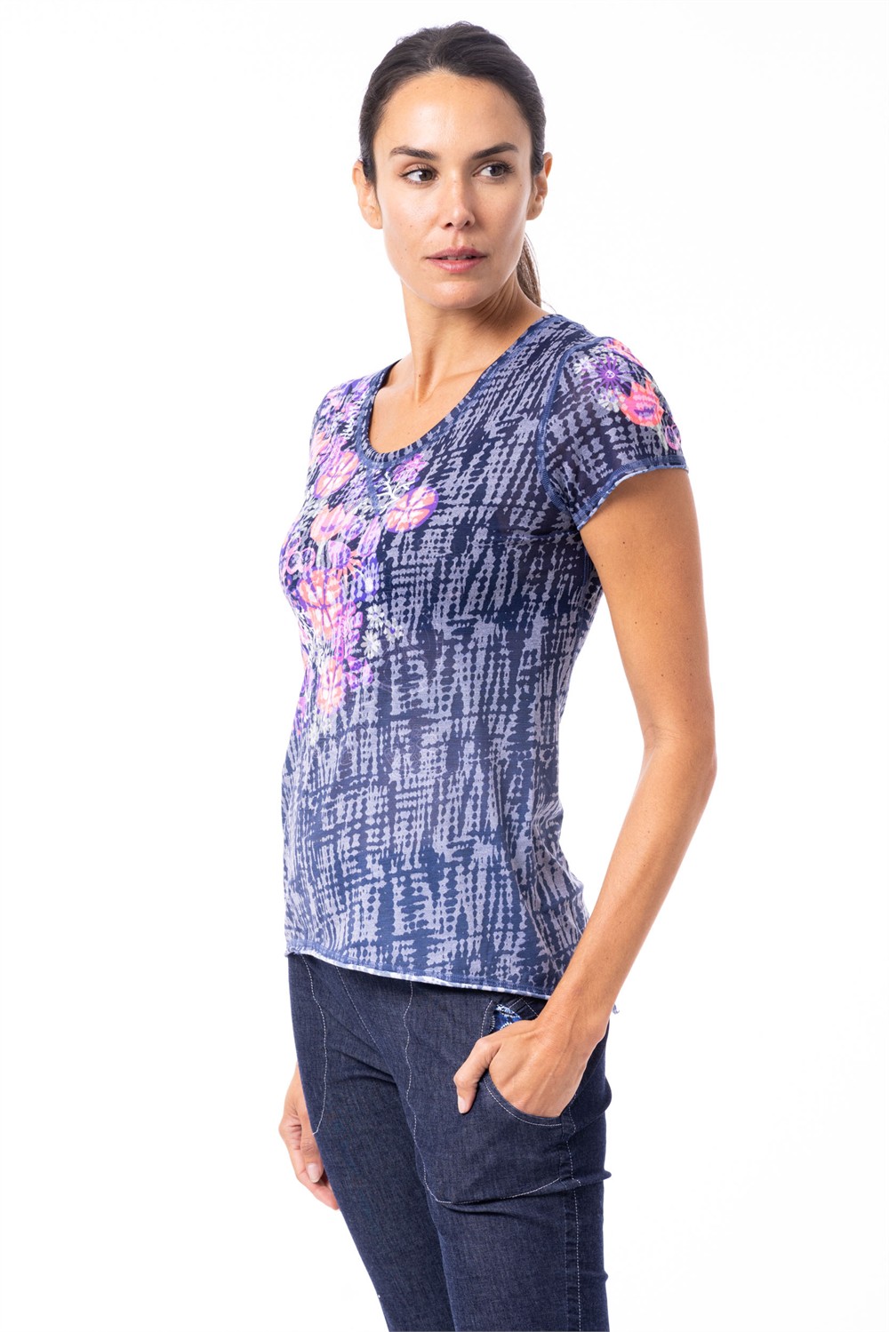 Una t-shirt per il tempo libero? La T-shirt Aloha è l'ideale! Colorata e completamente stampata. Prodotta in fresco tessuto poliestere e viscosa stampato all-over, è ideale per le giornate più calde grazie alla lavorazione devorè dove il tessuto viene alleggerito. La costruzione twist con taglio a sbieco e spacco sul fondo posteriore dona una caratteristica vestibilità non convenzionale.