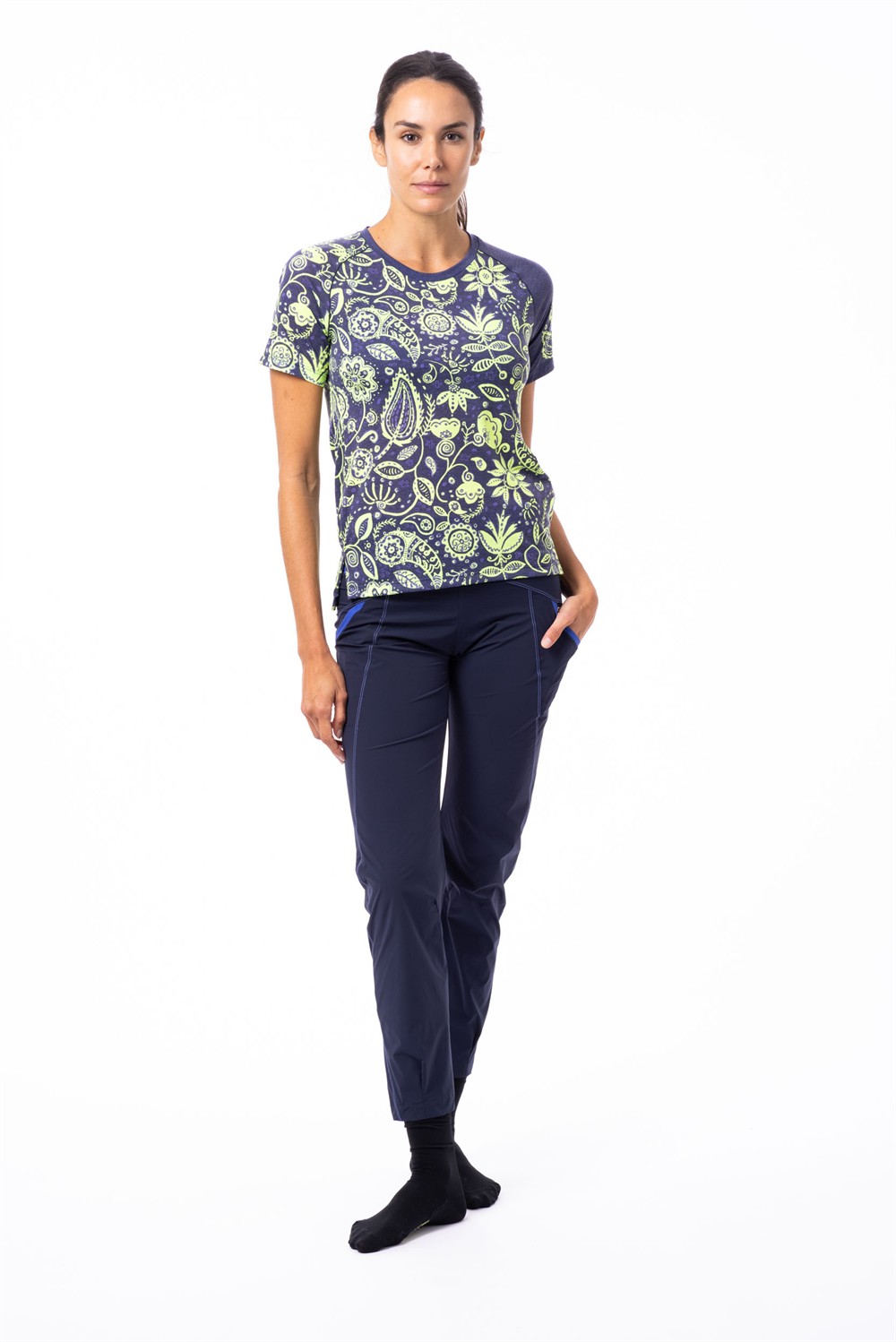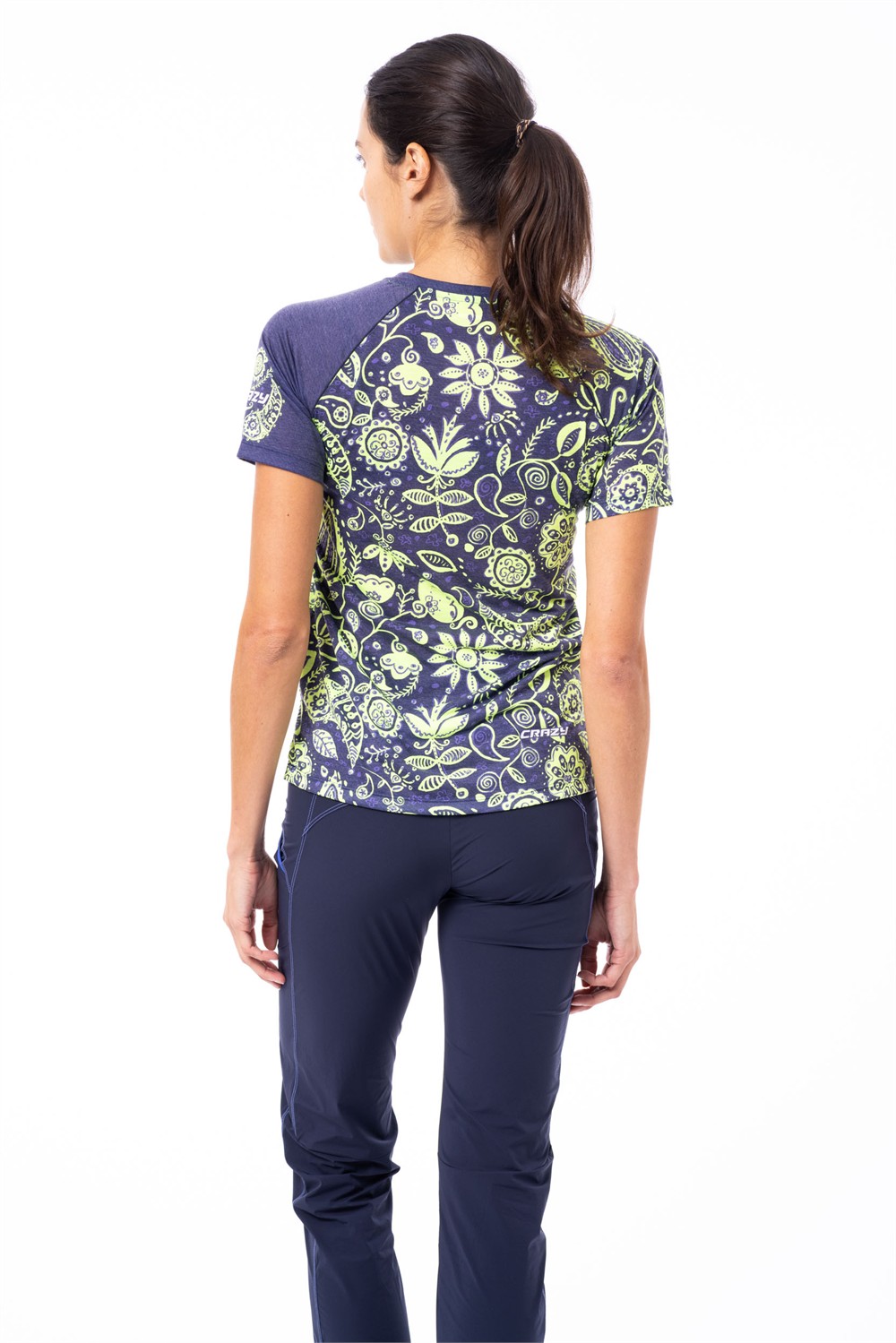 La nostra T-shirt realizzata per le giornate attive all'aperto, ma ideale anche per tutti i giorni grazie alle sue stampe uniche e alla freschezza del tessuto in Tencel naturale che la rende morbida e piacevole al tatto. È inoltre estremamente funzionale, facilmente lavabile e con proprietà di assorbimento dell'umidità.