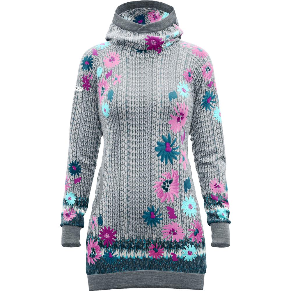 Cosa intendiamo con dress? Una felpa lunga con cappuccio che si può indossare anche come vestito per il tempo libero e i momenti informali quando non vuoi rinunciare a stile e comodità. La soluzione perfetta: indossare un capo dall'aspetto moda e casual prodotto con un tessuto tecnico HP caldo e felpato nato per l'utilizzo in montagna, ma stampato con le fantasie uniche ed esclusive di Crazy.