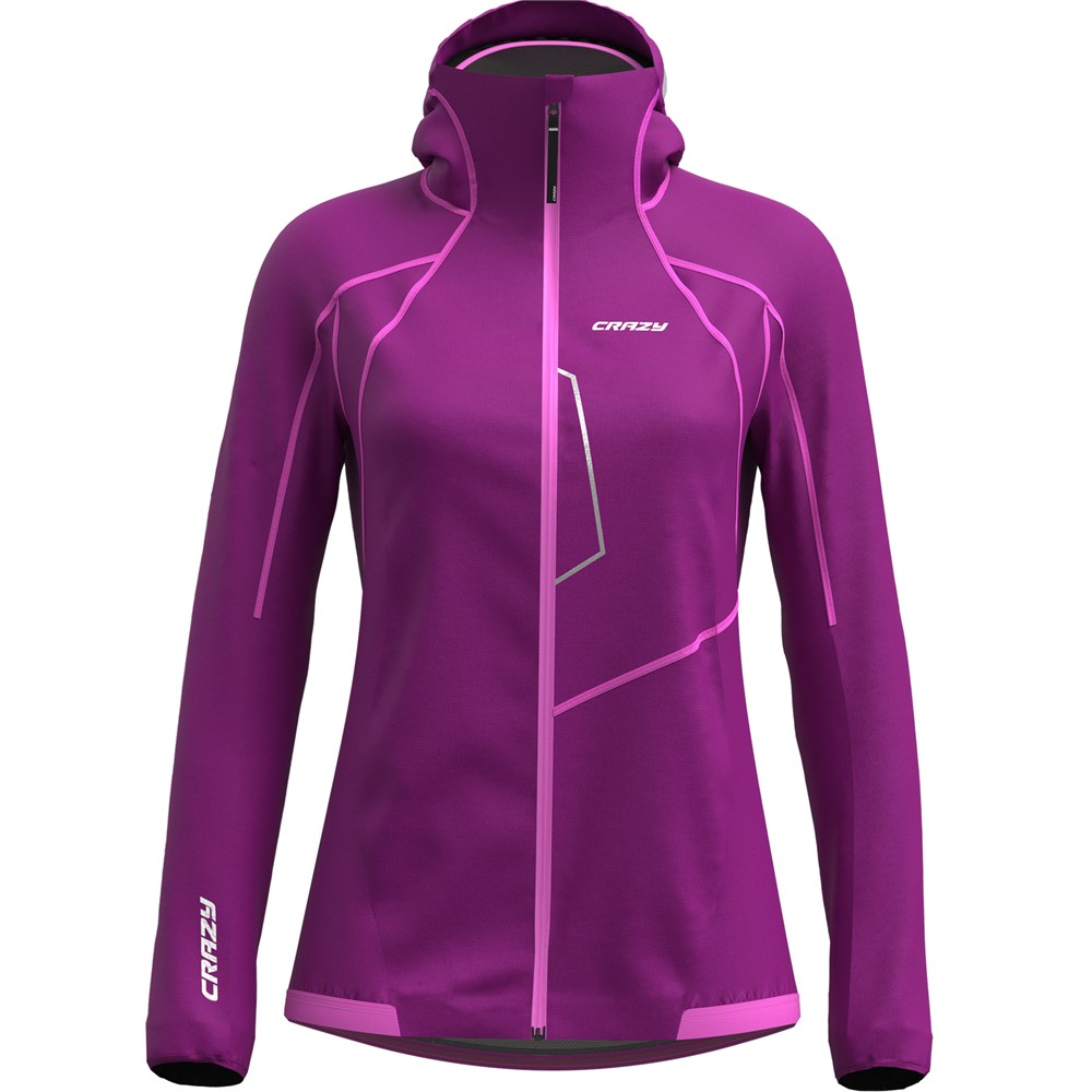 Completely redesigned this year, the Jkt Shark is the perfect ultralight jacket, yet fully waterproof, designed for running and outdoor activities. What sets it apart is the lightweight Dermizax nylon fabric, with 2.75 volumes of waterproofing and 20K mm water column and 20K breathability. A lightweight, 4-way stretch, breathable, and packable fabric. Perfect for a trail running shell. All seams are taped and elasticized to ensure maximum water protection and optimal comfort. The hood is adjustable with a microfiber sweatband and a rigid brim, providing effective protection from the elements. The updated fit is athletic, designed to layer over a t-shirt or with a mid-layer on colder days or during trekking. The jacket gets its name from the "Shark Vents," an innovative ventilation system created by Crazy, inspired by the gill function of sharks. These inverted openings are located behind the arms, allowing air to flow in while preventing water from entering, and they open during movement to provide direct ventilation. The front chest pocket with a zipper allows easy access to items during activity.