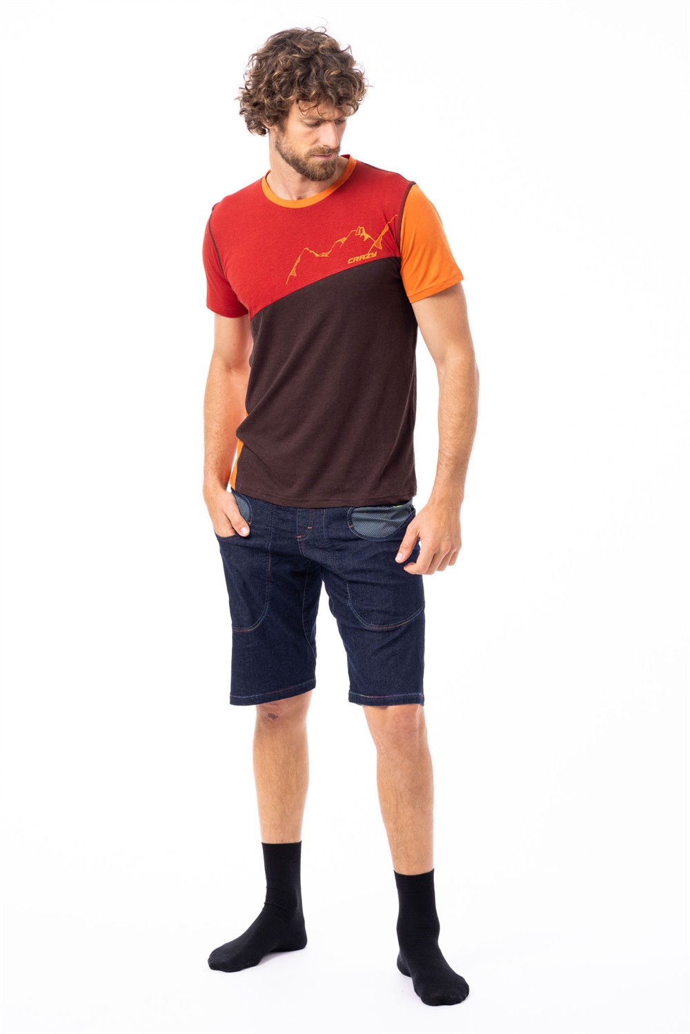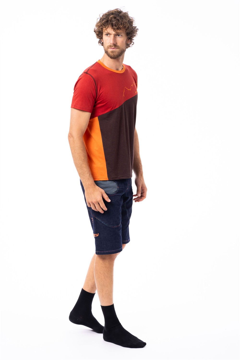 A t-shirt designed for leisure, featuring a modern geometric cut and color contrasts. Made from a fresh, natural hemp fabric, it offers comfort, breathability, and an original style, perfect for everyday life.