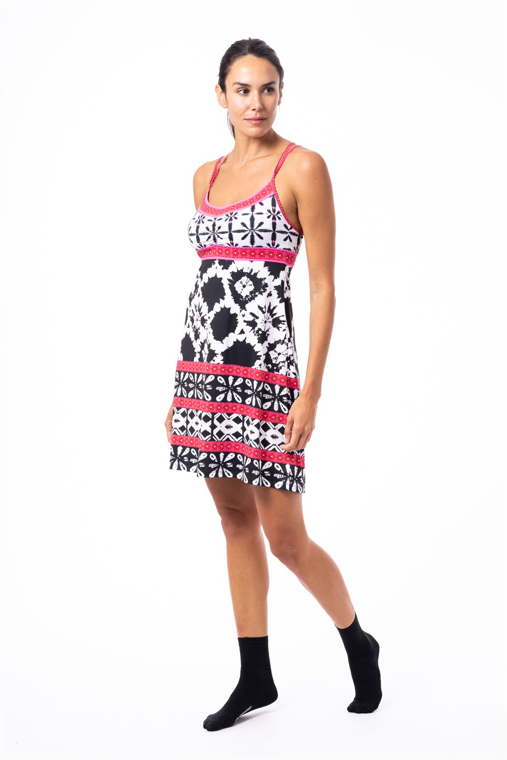 Our Kimera Dress is the epitome of femininity and versatility: whether on the beach or in nature, it’s your ally on hot days! The skirt is made from a cool, lightweight, and breathable microfiber treated with Rapid-dry. The straps, extremely light and elastic, support an integrated bra with removable cups.