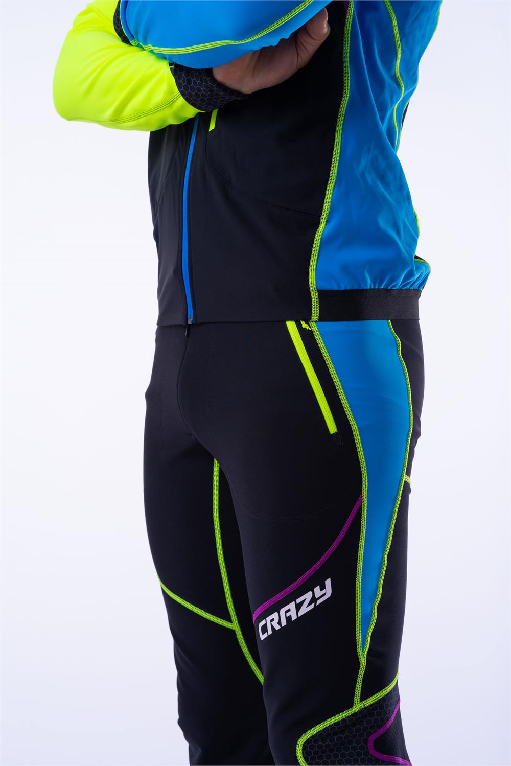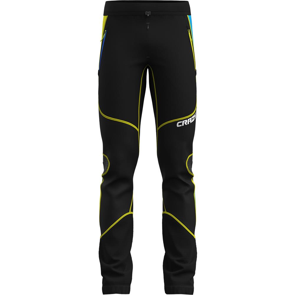 The Acceleration line is designed for training and represents the essence of fast and light in the mountains, combining highly technical fabrics and advanced constructions with an athletic fit and unique style. Crazy 100%! The pants are made from Vuelta fabric, “Made in Italy,” chosen for its comfort, high breathability, and thermal regulation. The knee inserts are in softshell with a windproof membrane for additional protection, and the ankle cuffs feature laminated fabric with cut-resistant reinforcement. This garment has an athletic fit and includes technical details such as waterproof gaiters with full-grip elastic that adapt to ski mountaineering boots.